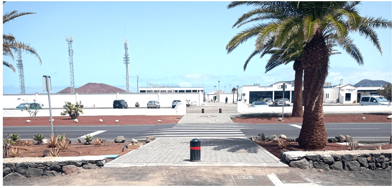 Il est relié par une voie piétonne protégée à un vaste parking municipal situé juste en face et à un arrêt de bus (ligne Playa Blanca – Arrecife).