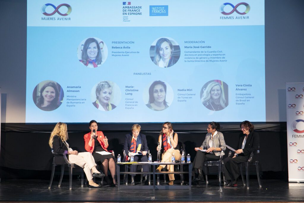 Mujeres Avenir travaille pour donner la parole aux femmes et contribuer à l’égalité réelle entre les femmes et les hommes dans tous les domaines, grâce au soutien de l’ambassade de France en Espagne, du ministère de l’égalité et du ministère espagnol des affaires étrangères, de l’Union européenne et de la coopération. Mujeres Avenir promeut également la création d’un réseau de femmes issues de différentes entreprises qui contribue à générer de la valeur dans la société et à renforcer les liens entre l’Espagne et la France, ainsi qu’à gagner en visibilité pour une lutte plus efficace contre les inégalités.