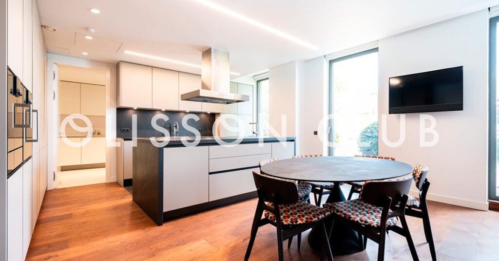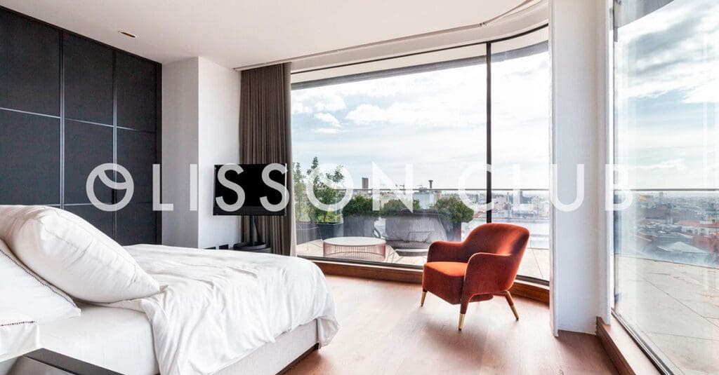 À quelques pas du Paseo de la Castellana, à Madrid, se trouve cet immeuble luxueux et esthétique conçu par le prestigieux architecte Rafael de La-Hoz. Ce spectaculaire penthouse en duplex est situé au sommet de l’immeuble et se distingue par son espace extérieur, puisqu’il dispose de plus de 300 m2 de terrasse d ‘où l’on peut profiter des vues incroyables sur le centre de la capitale espagnole.