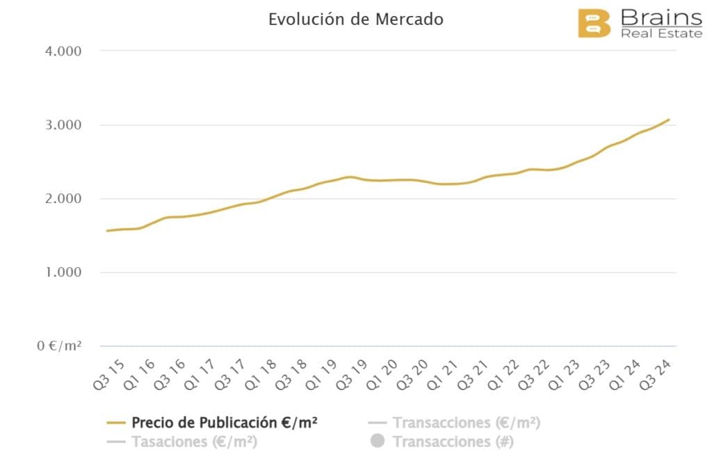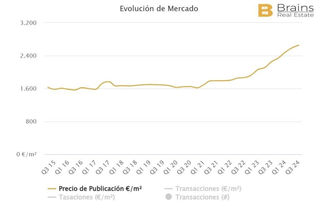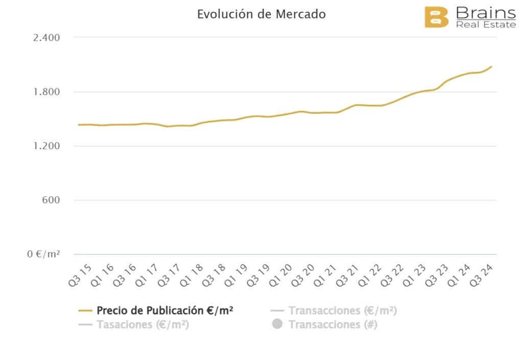 Le prix des logements dans cette zone de la côte nord s’élève actuellement à 2.076€/m2, après avoir enregistré une augmentation annuelle de 8,3% et une augmentation trimestrielle de 3,1%. Dans cette partie de l’île, le prix a augmenté plus régulièrement que dans le cas des municipalités mentionnées ci-dessus.