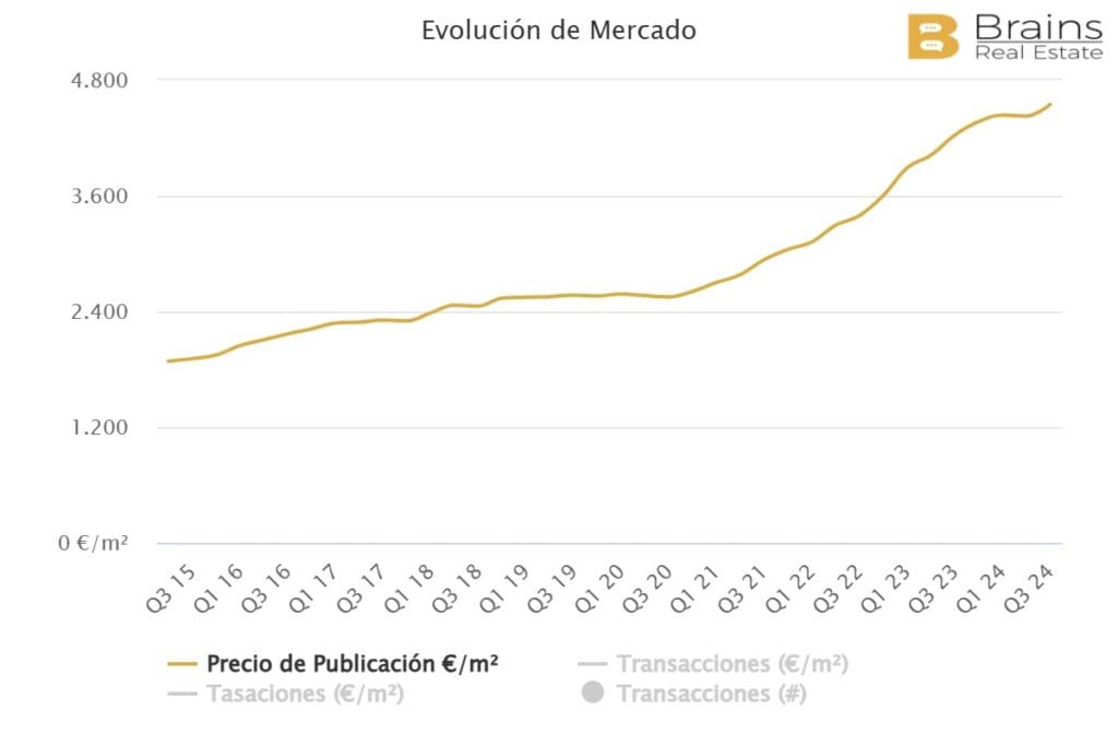 Le prix des logements dans cette zone côtière atteint actuellement un niveau record de 4.548€/m2, après avoir enregistré une augmentation annuelle de 7,5% et une augmentation trimestrielle de 2,8%. Le prix a commencé à croître plus rapidement à partir de la fin de l’année 2020, lorsque le prix est tombé à 2.608€/m2.