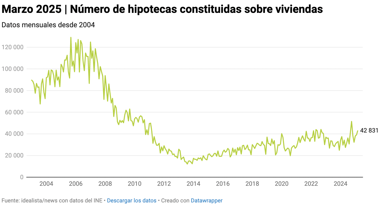 Le marché hypothécaire a connu un autre mois positif. Selon les données de l’Institut national de la statistique (INE), 42 831 prêts immobiliers ont été enregistrés en mars, soit une augmentation de 9,6% par rapport à février et de 44,5% sur un an. Il s’agit du neuvième mois consécutif de hausse, laissant le premier trimestre de l’année en hausse de 18,3 % par rapport à la même période l’année dernière.