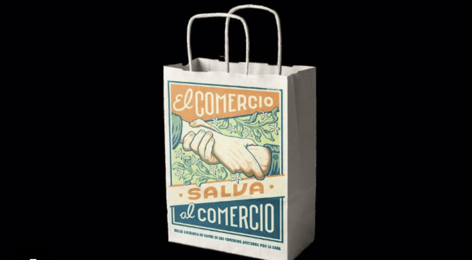 La campagne s’intitule « El comercio salva el comercio» ( Le commerce sauve le commerce ), clin d’œil au fameux slogan affiché au lendemain de la catastrophe ‘el pueblo salva al pueblo’ (le peuple sauve le peuple) car au moment du drame, les pouvoirs publics n’avaient pas su s’organiser pour secourir les victimes, mais une marée humaine de volontaires s’était spontanément investie. En réinterprétant cette accroche, les promoteurs de cette campagne cherchent à impliquer toute la société dans cet effort de reconstruction. Cette initiative s’inspire par ailleurs de celle lancée après les inondations historique de 1957 où des timbres de poste permettaient de collecter des fonds. Cette fois, l’idée repose sur la vente de sacs solidaires écologiques, réutilisables et biodégradables : vendus au prix symbolique d’un euro, ils permettront donc de collecter des fonds pour soutenir les commerces affectés.