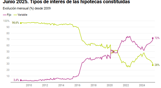 Le marché hypothécaire a connu un nouveau mois positif, pour le douzième mois consécutif. Selon les données de l’INE (Institut national de la statistique et du recensement), 41 834 prêts hypothécaires destinés à l’achat de logements ont été enregistrés en juin en Espagne, soit une hausse de 31,7 % sur un an. De plus, les données de l’INE indiquent une hausse de 24,9 % du nombre de transactions au premier semestre 2025.