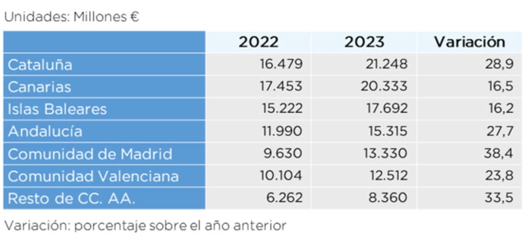 Dépenses des touristes internationaux par communauté autonome de destination. Source : Baromètre Braintrust basé sur les données de l’INE