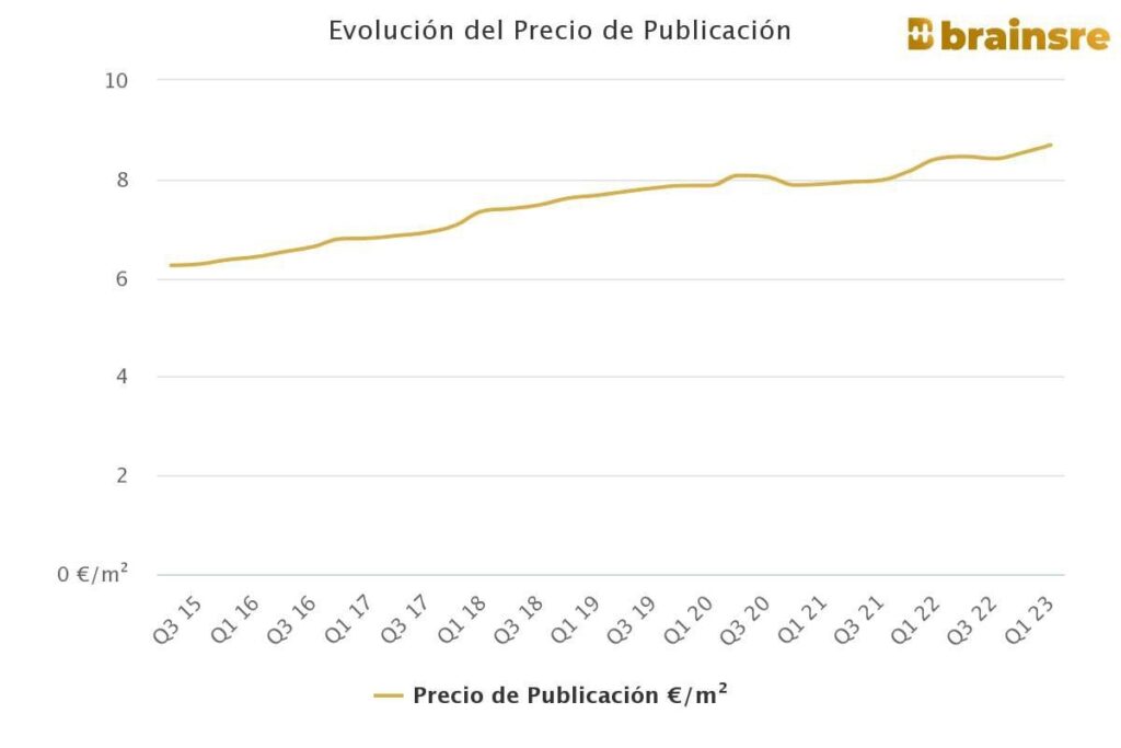 Dans le cas d’Actur-Arrabal, le prix des loyers s’élève à 8,4 €/m2/mois. Ce prix a légèrement augmenté depuis le premier trimestre 2021, où il s’élevait à 7,6 €/m2/mois, jusqu’à atteindre son maximum au dernier trimestre.