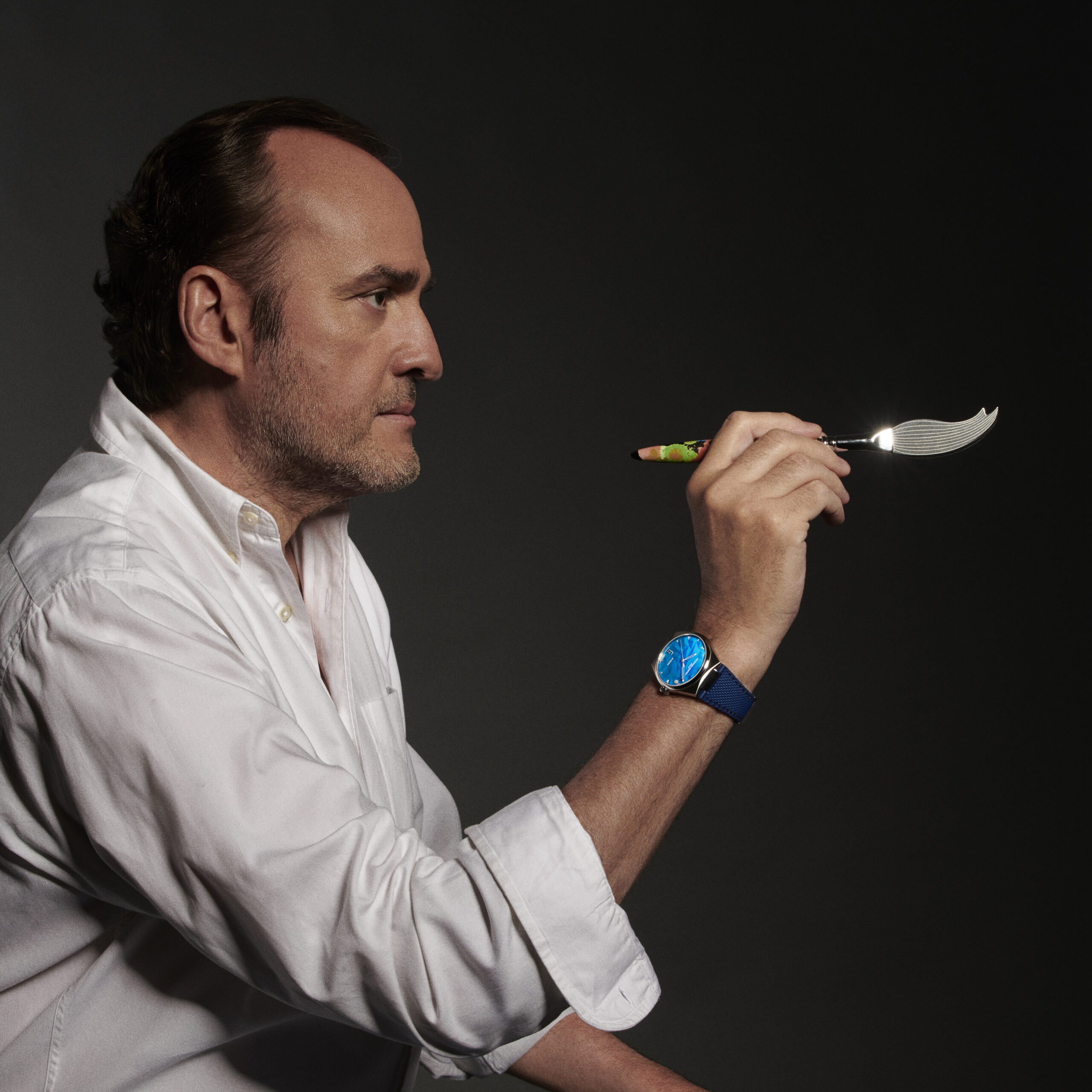 L’artiste et la manufacture se sont rapprochés suite à une rencontre avec Niels Eggerding, CEO de Frederique Constant, lors du lancement à Madrid du Gentleman Highlife Club, un espace unique réunissant des professionnels de différents métiers qui partagent avec la manufacture les mêmes valeurs d’excellence et de perpétuation d’un savoir-faire traditionnel exclusif.