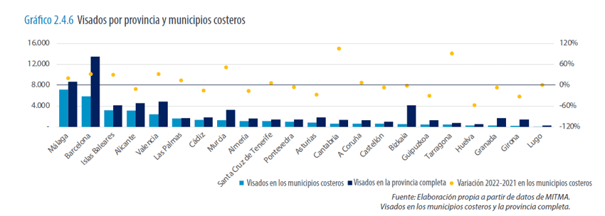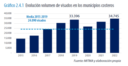 L’activité de développement dans les muninipalités côtières espagnoles a augmenté en 2022 pour atteindre des niveaux légèrement supérieurs à ceux de 2019. Les nouveaux permis de construire approuvés l’année dernière dans les marchés côtiers représentaient 32% du total national et ont augmenté de 9,8% l’année dernière pour atteindre 34.745 permis.