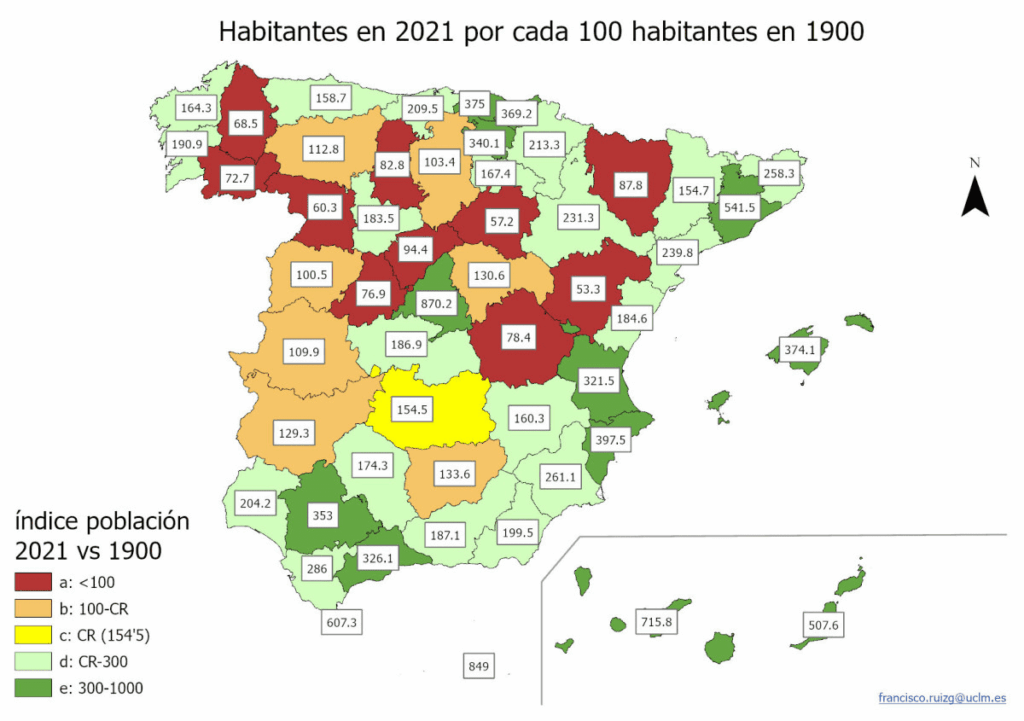 Par ailleurs, les données fournies par Francisco Ruiz montrent que le dépeuplement est un phénomène qui se poursuit. Au cours des 20 dernières années, par exemple, le nombre d’habitants dans la province de Zamora a diminué de 16% ; à Palencia, de 9,8% ; à Cáceres, de 5%, etc.