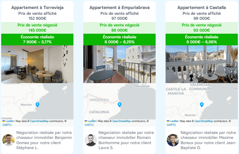 Olé Immobilier s’appuie sur des accords avec les plus grandes agences immobilières en Espagne pour trouver des biens correspondant aux critères spécifiques de chacun. L’engagement de l’agence repose sur la satisfaction des clients, promettant de fournir le meilleur service possible, de négocier, de chercher et de rechercher si nécessaire, et de sécuriser chaque aspect de l’acquisition immobilière.