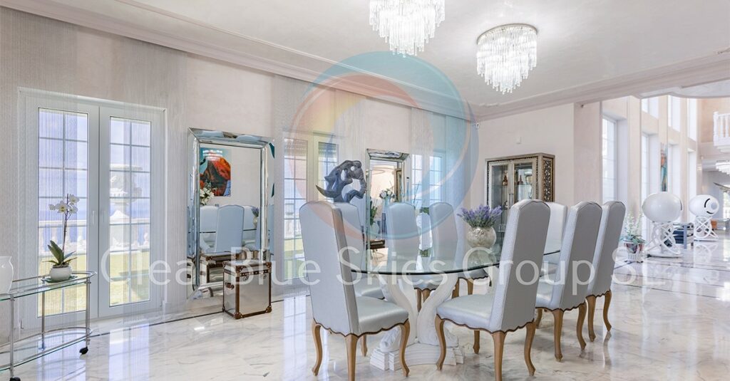 Dans l’immense cour se trouve également un curieux jeu d’échecs de taille humaine qui ravira les amateurs d’échecs. Après avoir accédé à la propriété par la terrasse supérieure, l’impressionnant atrium en forme de balcon impressionnera tous ceux qui décideront d’acheter la propriété avec son vitrage spectaculaire qui offre une vue incroyable sur l’océan.