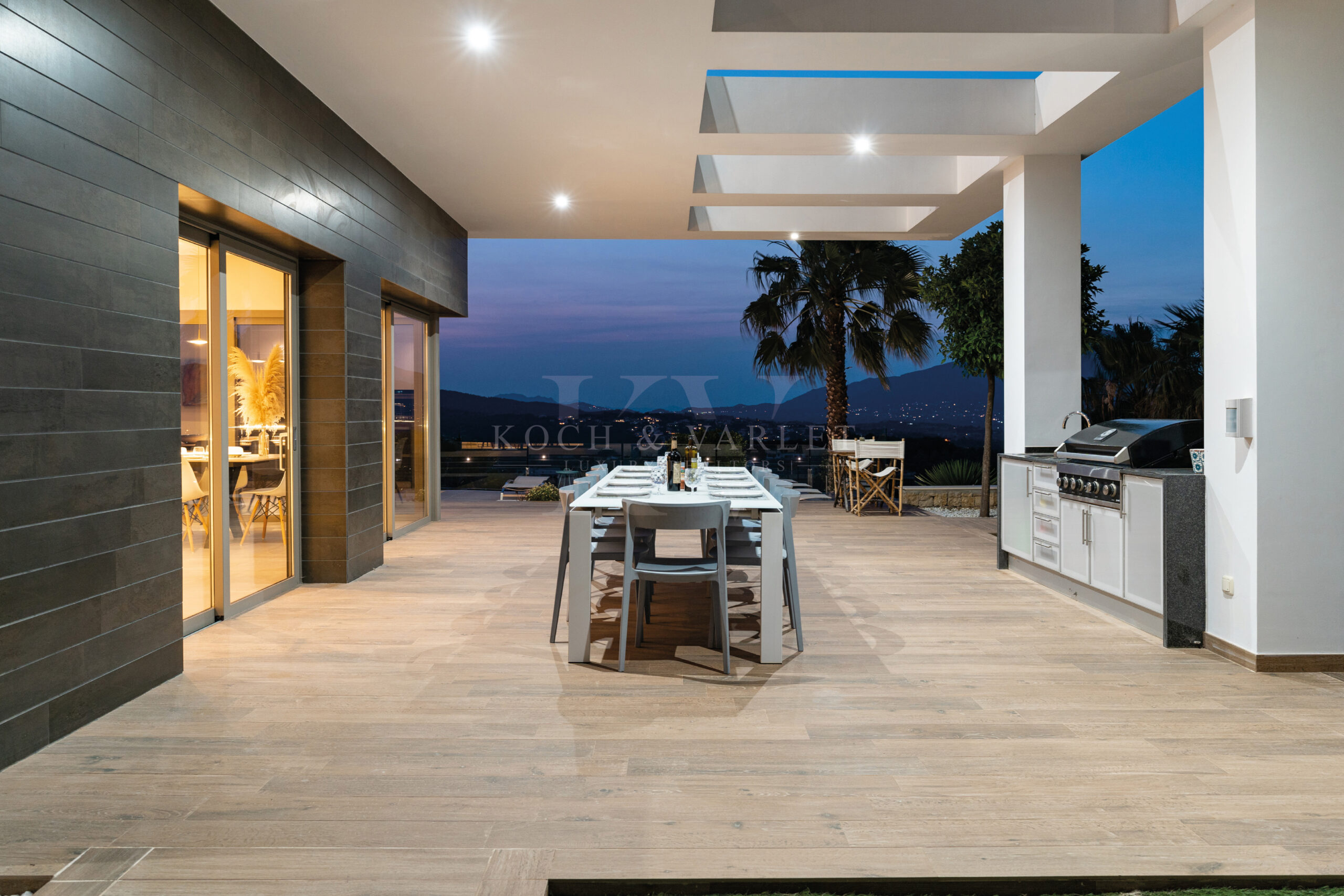 La Villa Crius, une maison moderne de luxe de 5 chambres, se démarque par sa conception récente, offrant un confort immédiat et un design à la pointe de la modernité. Vous apprécierez ses grandes terrasses ensoleillées, sa piscine à débordement chauffée, sa cuisine extérieure avec barbecue, son espace chill-out avec vue sur la mer Méditerranée et le pittoresque village de Benitachell