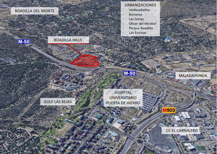 Le concept a été conçu par le studio anglais BGY en collaboration avec Arnaiz. L’un des principaux facteurs pris en compte est le respect de la zone dans laquelle Boadilla Hills sera construit, en conservant les zones clés de Valdecabañas et en respectant et en reboisant les environs pour maintenir un environnement de forêt indigène au sein d’un terrain urbain. Il est situé sur un terrain à côté de la M50 où le conseil municipal a concentré ces usages afin de libérer davantage de logements publics et de logements sociaux des lotissements de maisons individuelles. Avec Boadilla Hills, le développement urbain de Valdecabañas s’achève, intégrant l’intervention dans l’image et la configuration urbaines actuelles.