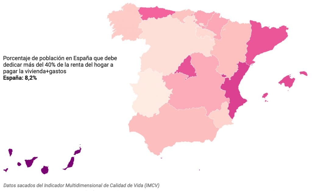En fait, le pourcentage de la population qui affirme que les dépenses de logement représentaient au moins 40 % du revenu disponible total des ménages a été réduit dans neuf régions autonomes, en particulier à Madrid, en Andalousie et en Estrémadure, mais a augmenté dans la Communauté de Valence, les Canaries et l’Aragon. .