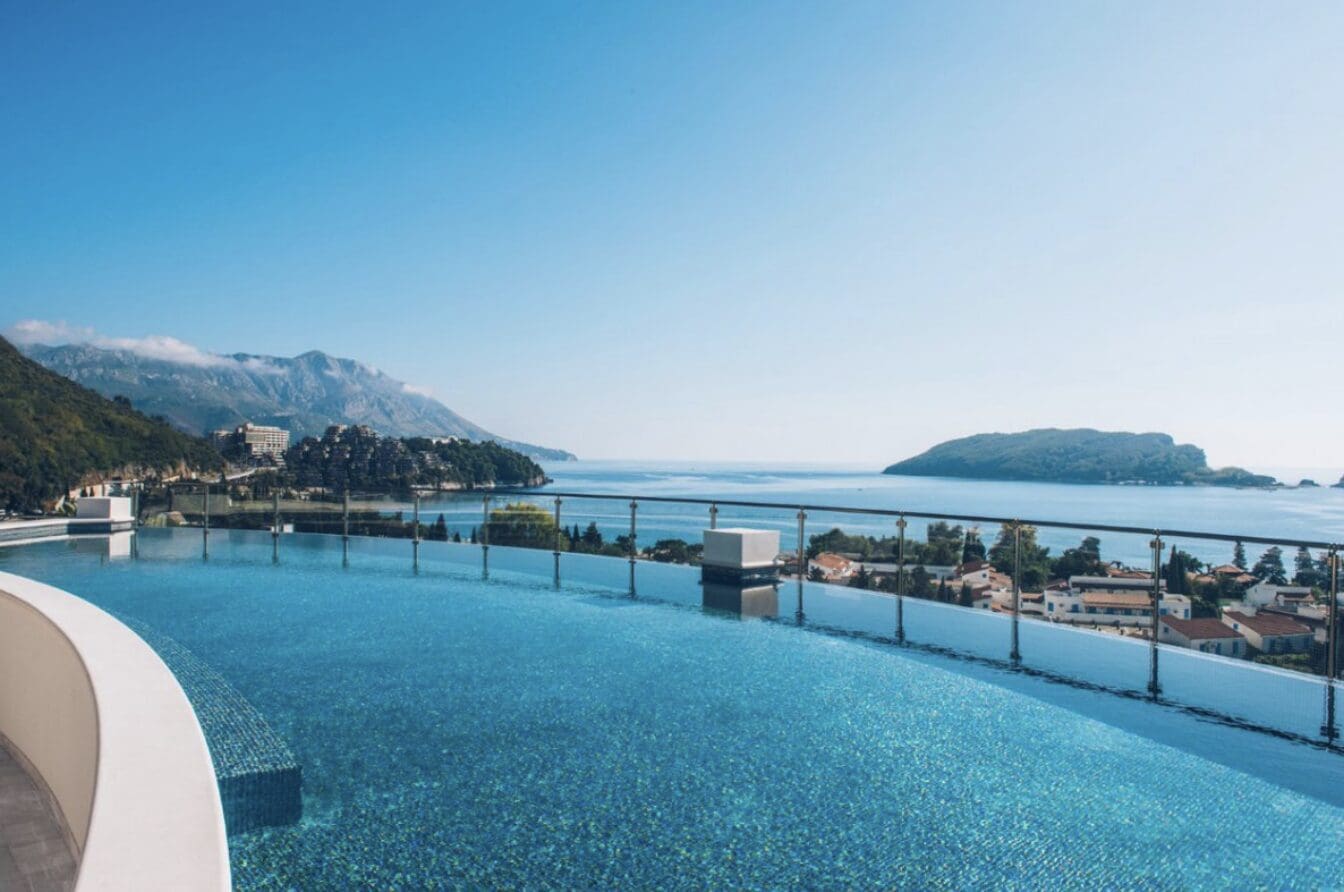 D’un style architectural simple et élégant, ses neuf étages sont couronnés par un rooftop avec une piscine à débordement qui offre à ses visiteurs une vue panoramique sur Budva, cité médiévale située à quelques minutes de l’hôtel, ainsi que sur la mer, avec la Île de Sveti Nikola en arrière-plan.