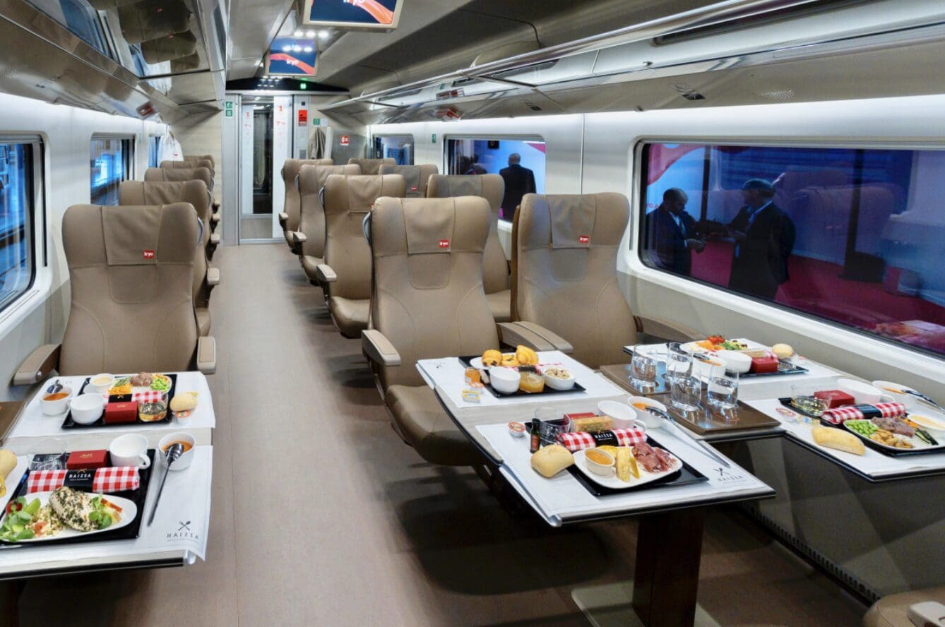 Toutes les classes disposent d’accoudoirs individuels équipés de prises USB et standard, et d’un accès au WiFi gratuit avec possibilité de connexion 5G. De plus, lors du processus d’achat des billets pour les classes ‘Infinita’, ‘Singular Only YOU’ et ‘Singular’, il est possible de demander l’inclusion du menu du marché, qui sera livré par les assistants à bord au siège , ainsi que l’option bar mobile.