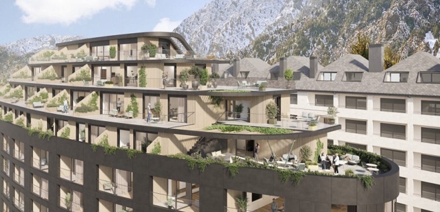 Le projet actuellement promu en Andorre sera construit sur un terrain de 905 mètres carrés situé au cœur de la capitale andorrane. Il comptera 82 appartements de 1, 2 et 3 chambres, tous avec terrasse, une zone d’espaces communs (800 mètres carrés), qui comprendra un espace de coworking d’entreprise, un espace spa et salle de sport, et un rooftop avec plus de cent mètres carrés avec des vues spectaculaires.