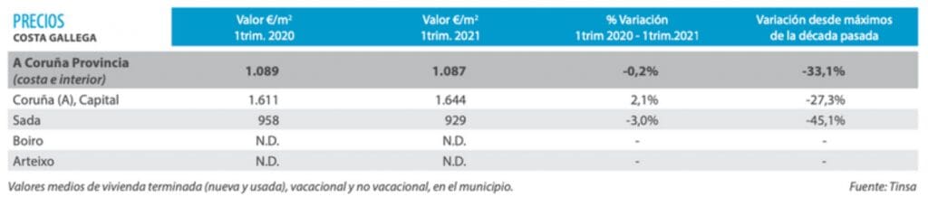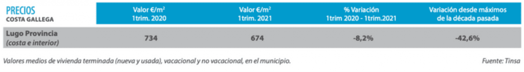 Logements neufs et d’occasion en hausse sur les légères hausses fin 2020, notamment à Baiona et Nigrán, à proximité de la zone d’influence de Vigo. Les marchés de la première et de la deuxième résidence enregistrent une opération similaire. Prix de location avec une augmentation allant jusqu’à 10% au cours des 12 derniers mois. Baiona et Nigrán maintiennent l’attractivité de la location pendant la saison estivale, se plaçant dans la tranche supérieure des valeurs de la province et de la communauté autonome.