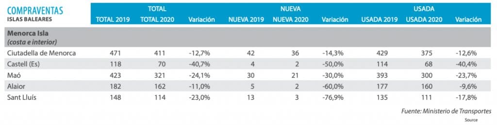 Es Castell, Sant Lluís, Maó, Alaior, Es Migjorn Gran, Ferreries, Ciutadella de Menorca y Es Mercadal.