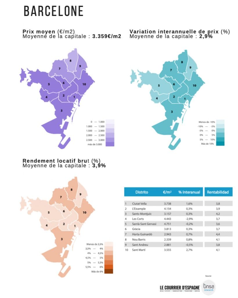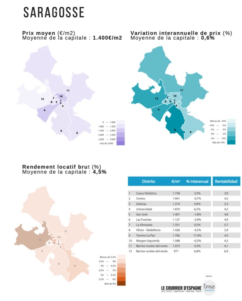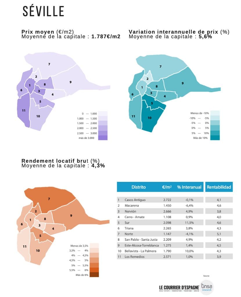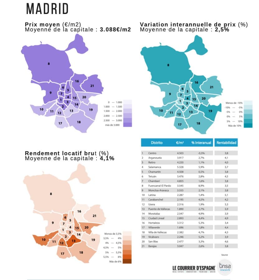 A Barcelone, les quartiers enregistrent généralement une croissance modérée d’une année sur l’autre, montrant encore un certain recul dans les quartiers les plus touchés au cours des trimestres précédents. Les variations dans les quartiers de Madrid sont dans une fourchette similaire, il y a déjà des augmentations annuelles généralisées et il n’y a pas de diminutions significatives même dans les localités périphériques. A Valence, Séville et Saragosse présentent des variations proches de deux chiffres en pourcentage, ainsi que des variations de l’environnement de stabilisation, donnant lieu à des ajustements d’intensité variable du taux interannuel.Les quartiers les plus chers, situés à Madrid et Barcelone et avec des chiffres supérieurs à 4.000 € / m2, sont Salamanque, Chamberí, Chamartín, Centro et Retiro (Madrid), et Sarrià-Sant Gervasi, Les Corts et Eixample (Barcelone).