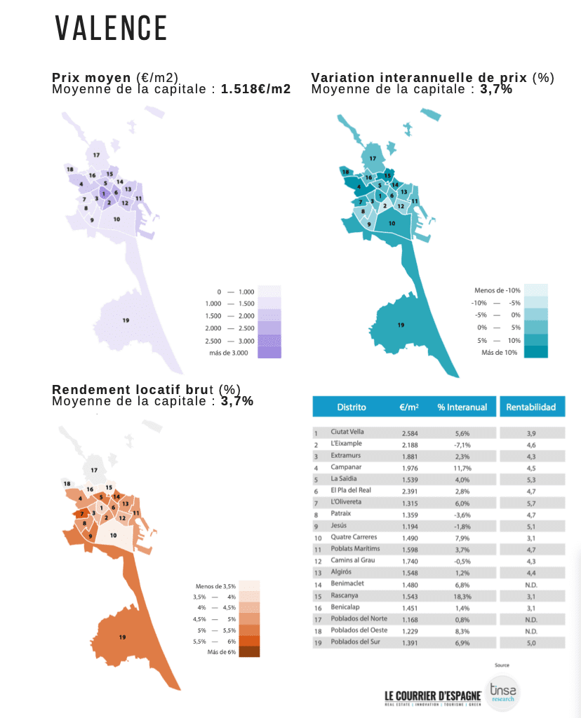 Prix et rentabilité du m2 dans les 5 grandes capitales