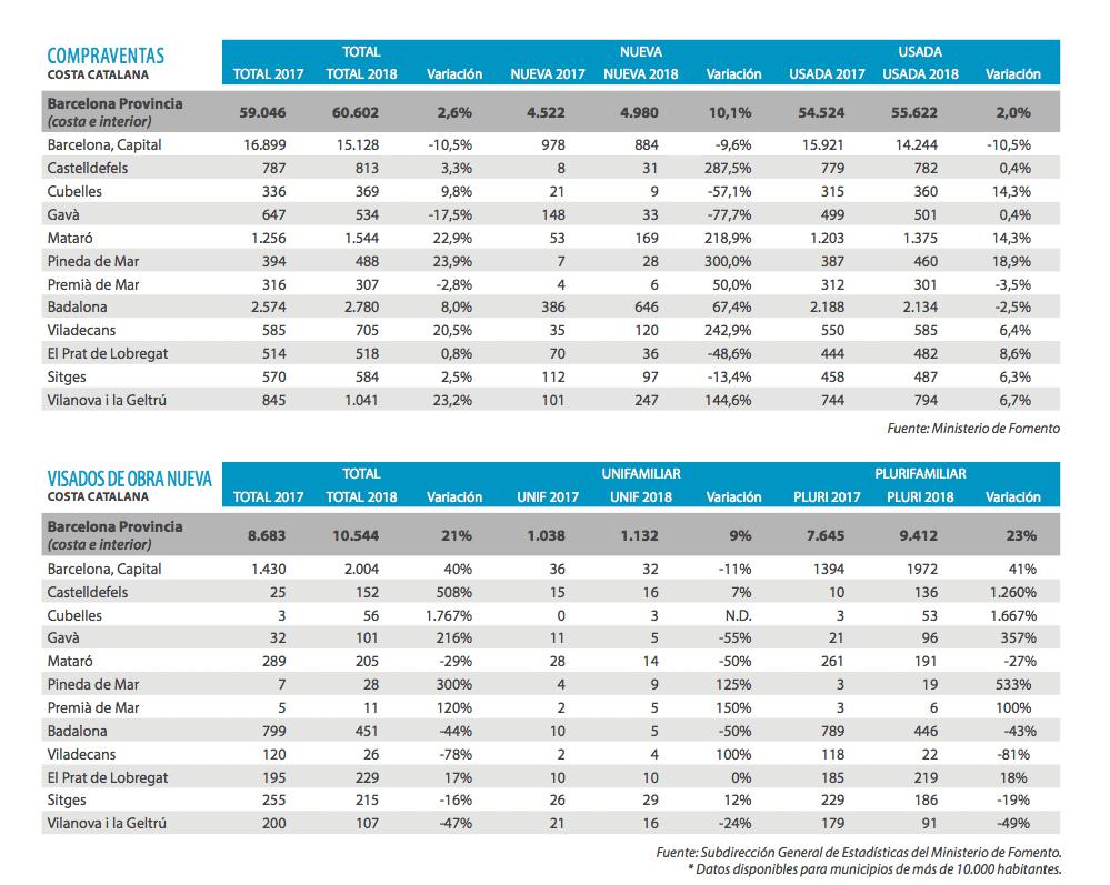 Les endroits les plus proches de Barcelone ont connu une nette augmentation des prix et du volume de travail, mais plutôt comme première résidence que pour des vacances. Au nord de Mataró, il y a une augmentation notable des prix et du volume de travail pendant les vacances.