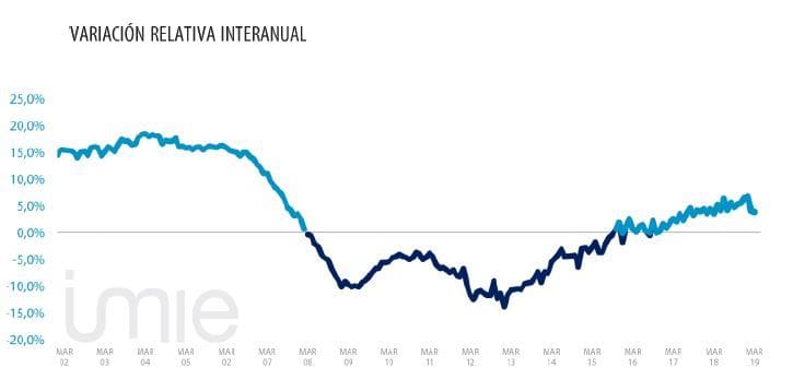 L‘ Indice Général reste à 1,491 points en mars, une donnée similaire à celle de février. L’étude révèle une croissance de 3,9% entre mars 2018 et mars 2019. Par rapport au minimum enregistré en février 2015, la valeur moyenne du logement en Espagne a augmenté de 13,8% et est inférieure au maximum recensé en 2007 de 34,7%.