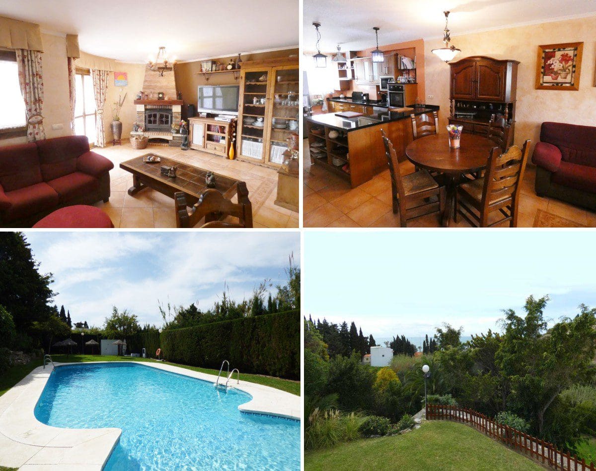 Cette maison se compose de trois chambres à l’étage avec une salle de bains. La chambre principale ouvre sur une belle terrasse couverte avec vue sur la mer et les jardins de la résidence. Au niveau principal on trouve une autre salle de bains en entrant sur la droite (transformé en cabinet de toilette mais qui peut aisément retrouver son état d’origine), une petite remise et une grande cuisine qui donne sur la pièce à vivre avec cheminée et terrasse avec coin barbecue et buanderie. Cette terrasse a un accès direct sur les jardins. La résidence a une enceinte sécurisée avec de nombreux endroits pour se garer et possède une belle et grande piscine avec de larges espaces pour prendre le soleil. Le centre animé d’Arroyo de La Miel avec ses restaurants typiques, ses bars, ses boutiques, ses services et administrations se trouve à 8 minutes en voiture mais il est possible également de s’y rendre en train via un arrêt de train qui est à seulement 10 minutes à pied et descendre à la gare centrale. L’aéroport de Malaga est quant à lui à 20 minutes en voiture et il est également posible d’y aller en train. Dans un périmètre proche de la résidence on trouve également des grand supermarchés, des restaurants, coiffeur, pharmacie et colleges. Si vous cherchez une maison sur Benalmadena avec trois chambres qui soit au calme, proche de la mer et dans un environement sécurisé avec jardins et piscine, celle-ci devrait susciter votre intérêt.