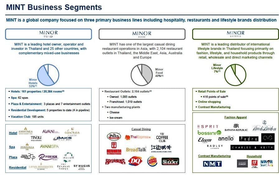 Selon la présentation envoyée le 10 juillet par Minor à la Comisión Nacional del Mercado de Valores (CNMV), qui l’a jugée recevable le 19 juillet, c’est l’une des plus grandes entreprises de l’hôtellerie et du tourisme en Asie-Pacifique, avec 160 hôtels et centres de villégiature, 2 100 restaurants et 400 magasins regroupant des secteurs tels que la mode, le design ou encore l’électroménager en Thaïlande et dans 39 autres pays.